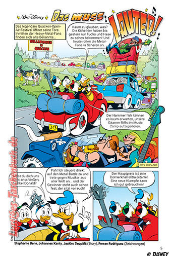 Donald Duck besucht mit seinen Neffen das größte Metal-Festival der Welt! Da geht es ganz schön heiß her, im wahrsten Sinne des Wortes ... Während Tick, Trick und Track im Music Camp an ihren musikalischen Talenten feilen, hat Donald schon die Gitarre im Anschlag und bringt die Boxen zum Glühen, um beim großen Metal Battle die Jury aus den Socken zu hauen. So viel sei schon verraten: Es wird schneller, härter, lauter! Doch wie hart rockt eigentlich Entenhausen? Und was braucht es überhaupt, um eine echte Metal-Ente zu werden? Und wie wappnet man sich für ein legendäres Festival? Donald und Co haben die Antworten darauf! Lass donnern!