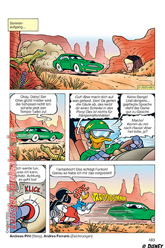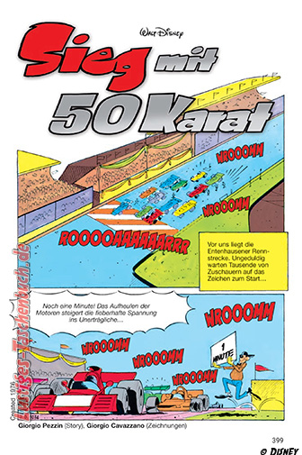 Vollgas in Entenhausen! Ob Boliden auf der Baustelle, Sabotage bei der großen Öko-Rallye oder das wildeste Dragster-Spektakel aller Zeiten: Das Donnergetöse der Motoren liegt in der Luft, wenn die Entenhausener nach Bestzeiten jagen, riskante Manöver wagen und sich packende Duelle bis zur Ziellinie liefern – auf Straßen, Schotter und Highspeed-Pisten.