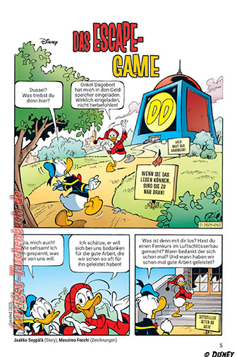 Donald und Dussel sind in den Korridoren und Räumen des Geldspeichers gefangen. Nur etliche verzwackte Knobelaufgaben können sie entkommen lassen. Ob das was wird bei diesen beiden Experten? Der Anblick des Sarkophags in Onkel Dagoberts Trophäenkammer erinnert Dussel irgendwie an ein bestimmtes Gebäude … Woran denkt er nur?