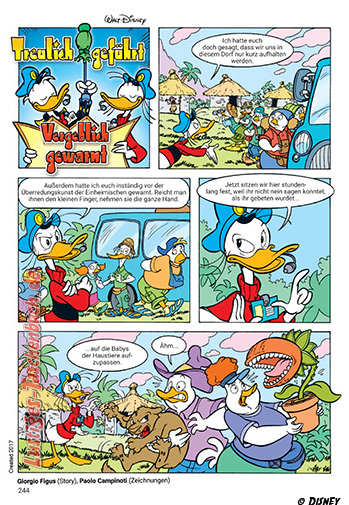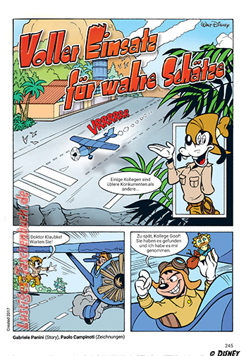 Die Entenhausener sind vom Abenteuerfieber gepackt! Allen voran Donald Duck, der sich endlich als echter Wildnisprofi beweisen will! Nicht zuletzt, um Daisy zu imponieren. Doch zwischen giftigen Pflanzen, lauernden Raubtieren und tückischem Treibsand zeigt sich schnell, dass die Wildnis ihren ganz eigenen Kopf hat … Währenddessen stürzt sich Dagobert Duck in eine Schatzsuche. Doch ausgerechnet mit Erzkonkurrent Klaas Klever soll er zusammenarbeiten! Indiana Goof? Der setzt wie immer alles aufs Spiel, wenn ein geheimnisvolles Artefakt lockt. Risiken inklusive!
