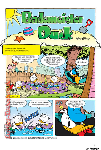 Sommerzeit ist Badezeit! Wenn die Temperaturen so richtig hochkochen, hilft nur noch ein Sprung ins schöne kühle Wasser! Auch unsere liebsten Entenhausener Donald Duck und Co. bekommen nicht genug von Freibad, See und Meer und machen sich mit Sonnenschirm, Taucherbrille und Handtuch auf zum nächsten Bade-Abenteuer. Egal ob Schwimm-Profi , Seepferdchen-Anwärter oder Bademuffel – mit den spritzigen Geschichten aus Entenhausen ist Sommerfreude vorprogrammiert!