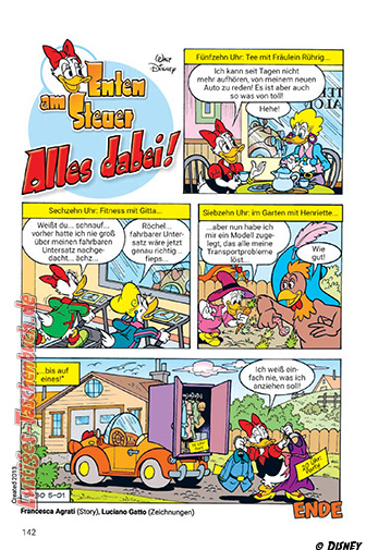 Sie meistert jede Herausforderung! Ob während einer Reise um die halbe Welt mit einem Lampengeist oder als kreatives Talent in einer Werbeagentur: Daisy zeigt hier wahre Größe! Sie setzt sich für Frauen in der Wissenschaft ein und bringt Daniel Düsentrieb um den Verstand. Gemeinsam mit ihren Nichten erlebt sie den Sturm über dem Planet der Feen – ein echtes Drama. Und wenn Daisy und Gundel gemeinsame Sache machen, steht es schlecht um Dagobert Ducks Geschäfte. Nicht wegzudenken aus ihrem Leben: Donald! Der kostet zwar oft genug Nerven, aber er ist immer da, wenn es drauf ankommt.