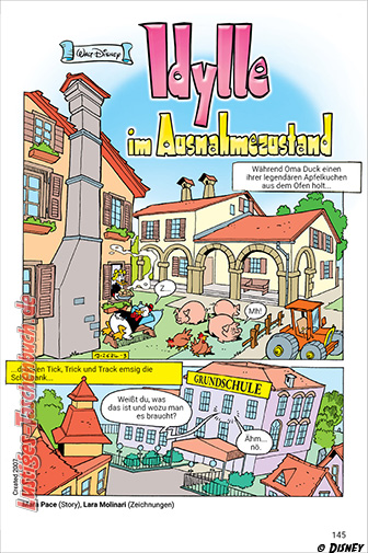 Oma Duck probt den Bauernaufstand! Die Zukunft der Landwirtschaft steht schließlich auf dem Spiel. Mit vereinten Kräften kämpfen Dorette Duck, Daisy Duck, Gitta Gans und Rita Rührig gegen tückische Tricks und miese Machenschaften eines korrupten Konzerns. Das Landleben ist eben bei Weitem nicht so beschaulich, wie es zunächst den Anschein hat: Mal sind es zu viele Touristen, die für Chaos sorgen, ein anderes Mal Saboteure mit einem Superdünger. Natürlich erinnert sich Dorette zwischendurch auch gern an frühere Zeiten: an ihre Farm in Afrika oder an die ersten, schwierigen Jahre auf dem Hof mit Franz und ihrer legendären Superkuh Käthe …