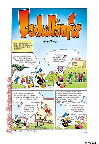 Sport Charaktere: Bürgermeister, Daisy Duck, Donald Duck Code: W WDC 286-01 Originaltitel: Donald Duck The Olympian Torch Bearer Ursprung: U.S.-Comichefte Erstveröffentlichung: Seitenanzahl: 13 | 141 | |