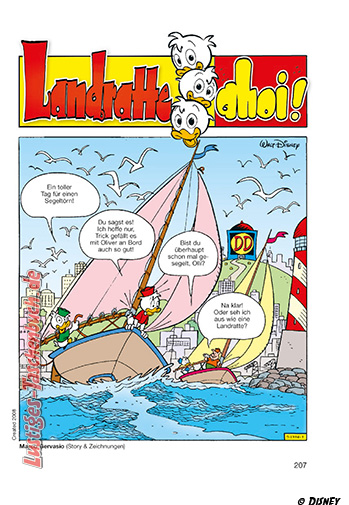 Abenteuer Charaktere: Tick, Trick und Track Code: I TL 2736-3 Originaltitel: Qui, Quo, Qua e la vela "spiegata" Ursprung: Italien Erstveröffentlichung: Seitenanzahl: 6 | 207 | |